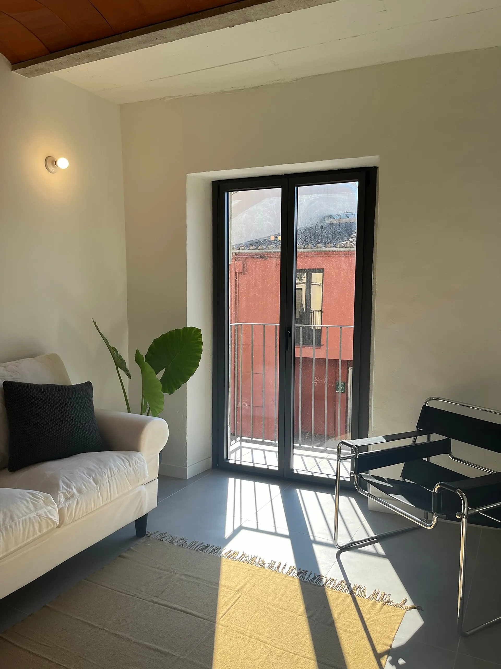 La tipologia de l’habitatge amb una planta molt profunda i estreta, planteja un gran repte: fer arribar la llum natural a totes les estances. Per això, es decideix buidar part del volum existent per crear un pati posterior que arriba fins a la planta baixa i proporciona llum natural i ventilació creuada a tot l’habitatge.