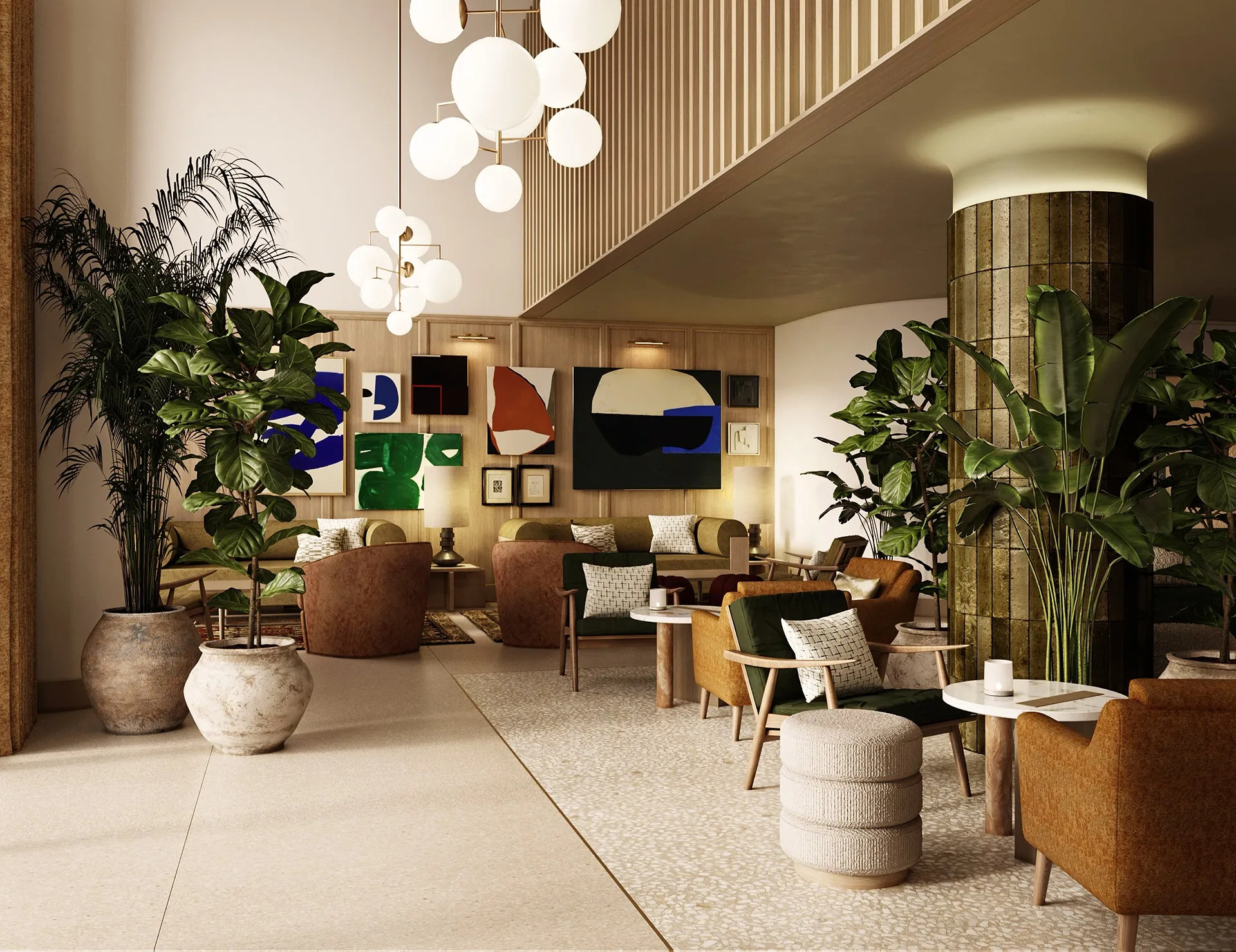 El projecte comença amb una primera fase de consultoria durant la redacció del projecte arquitectònic, en col·laboració amb el despatx d’arquitectura local, amb qui treballem la definició de la distribució, els recorreguts i els espais de l’hotel. Un cop el programa funcional va ser validat pel client i per les entitats locals a nivell normatiu, es dona pas a una segona fase centrada en el projecte d’interiorisme per a totes les zones de l’hotel.