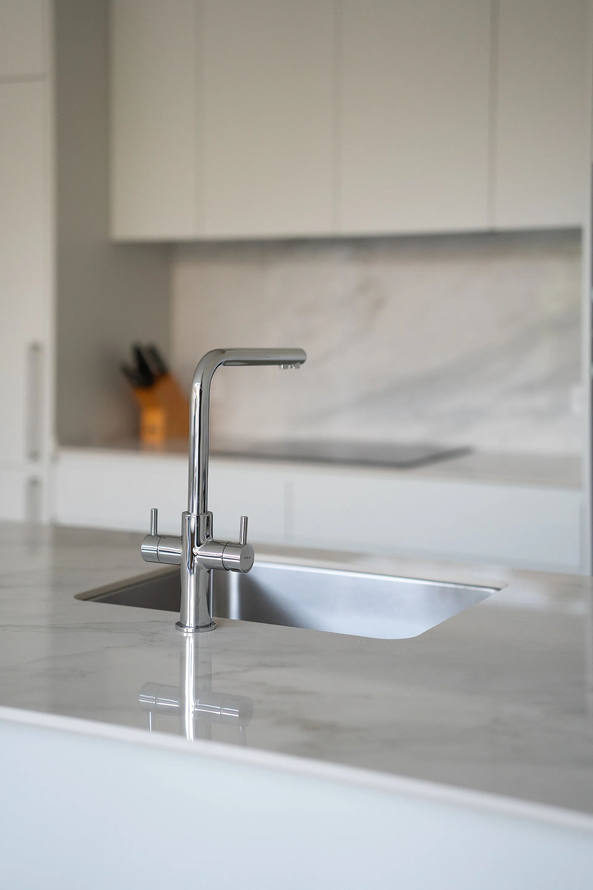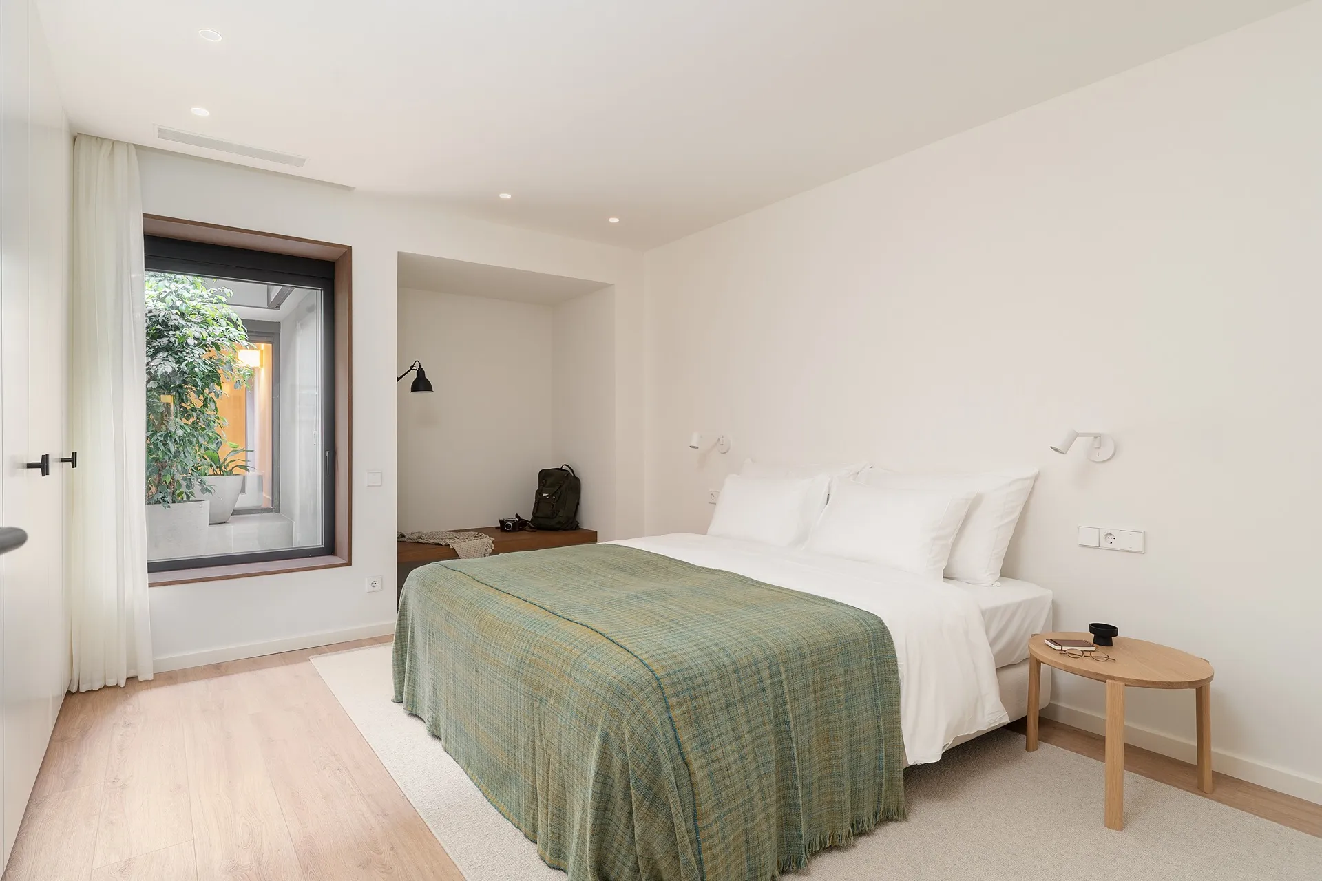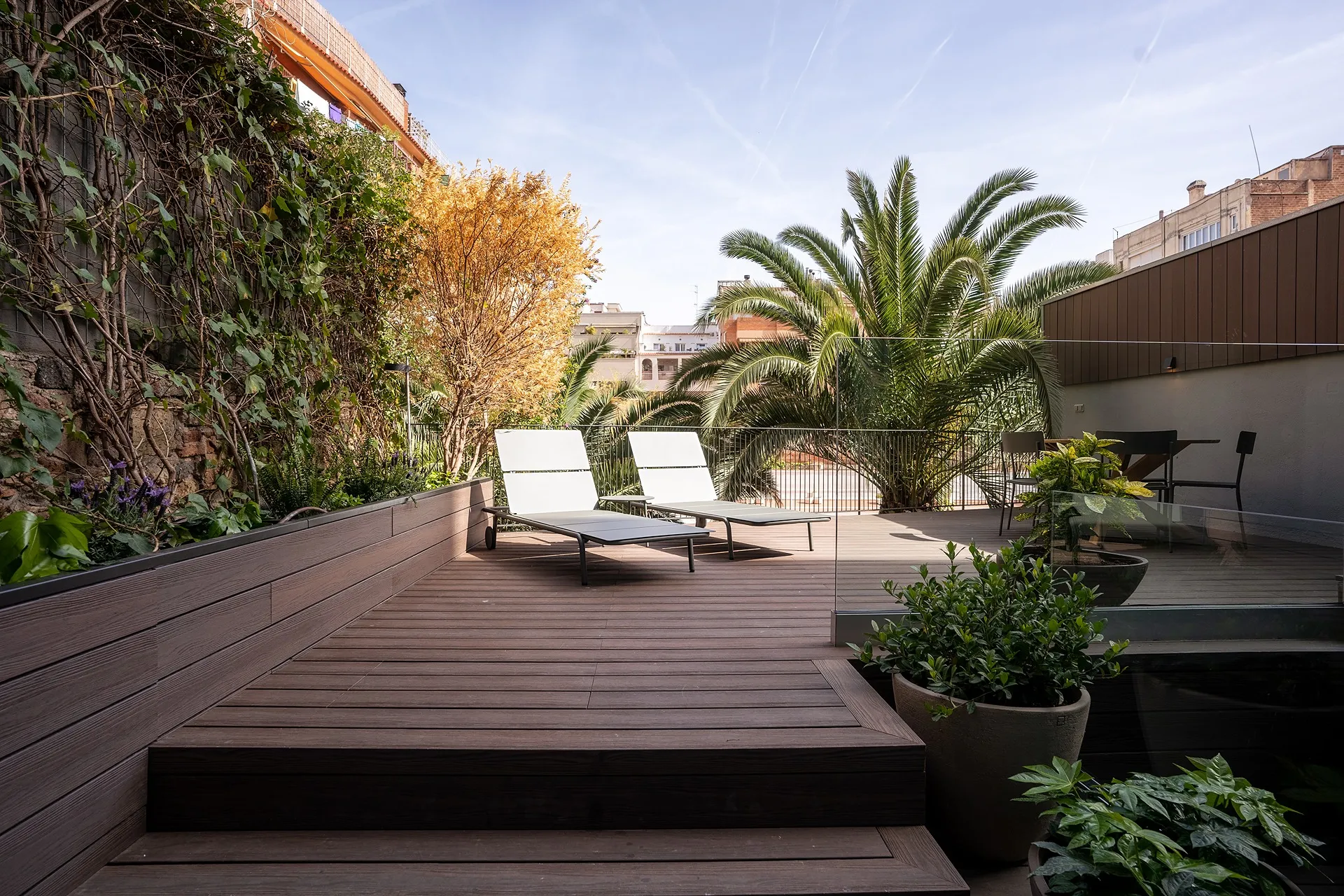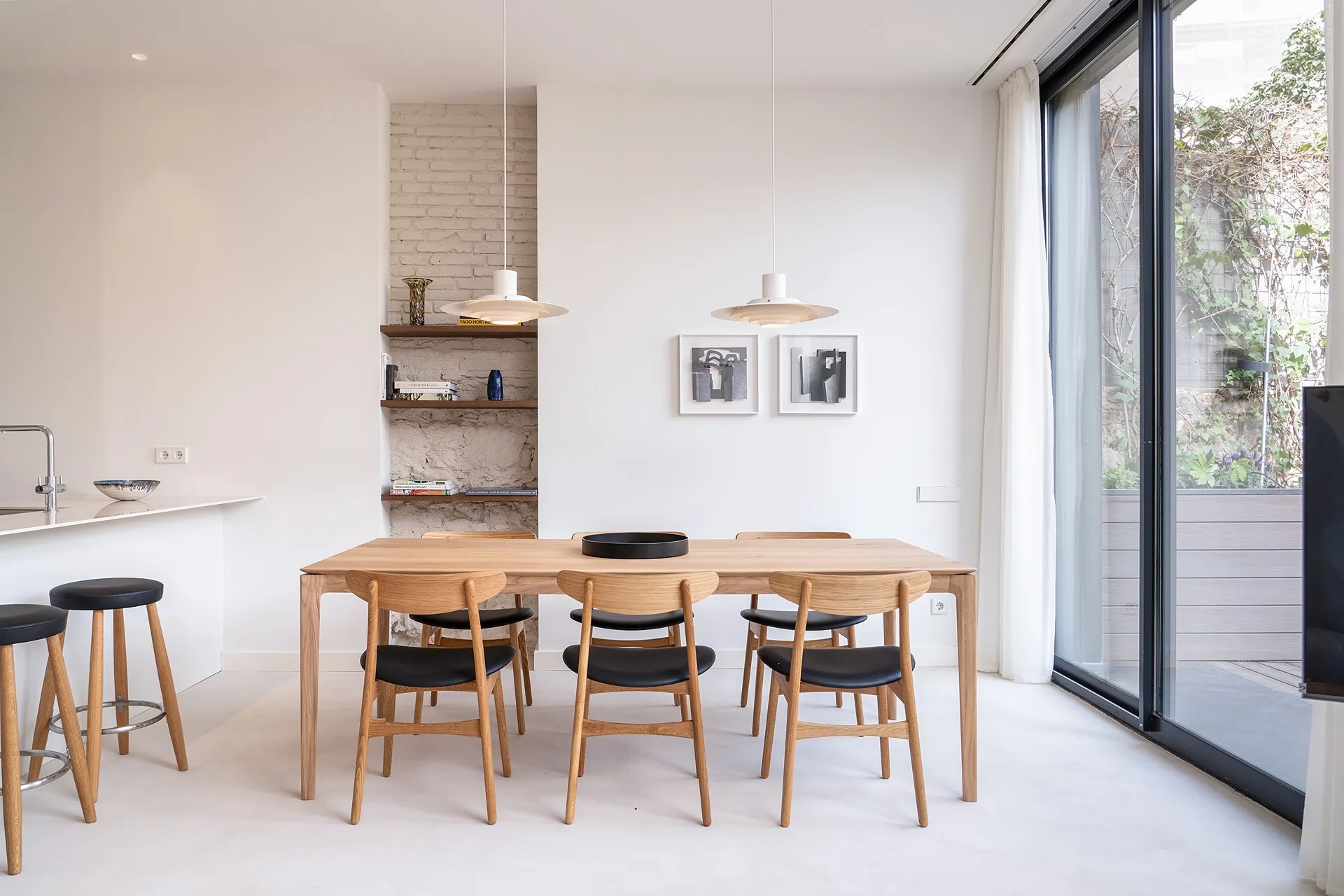 Aquesta rehabilitació integral d’un habitatge dúplex al cor de Barcelona ens ha permès desenvolupar un enfocament complet d’arquitectura i interiorisme, aprofitant les dues plantes per potenciar la separació clara entre la zona de dia i la de nit. La nova zona de dia es projecta en contacte directe amb la terrassa exterior, creant un únic espai que integra cuina, menjador i estar, i que es beneficia de la llum natural que entra pels grans finestrals de façana.